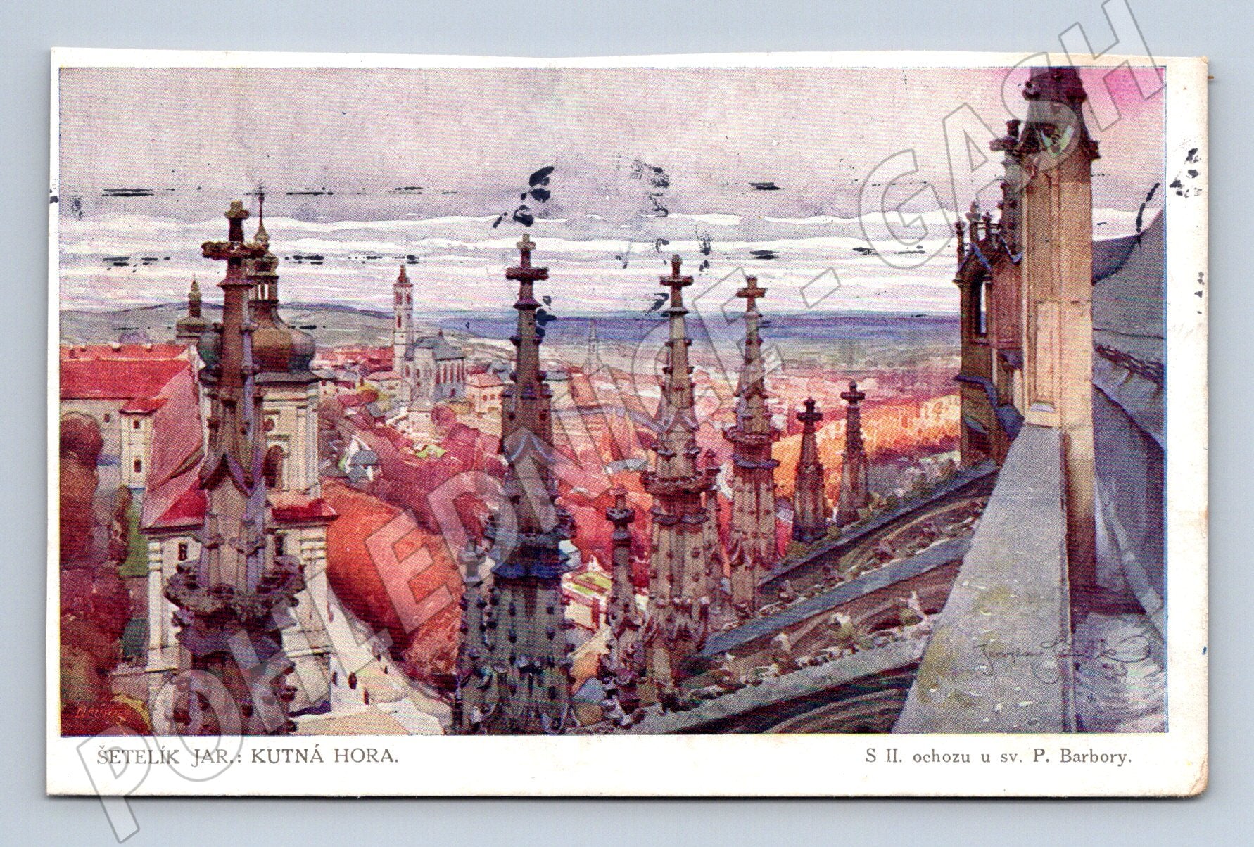 Kutná Hora – sv. Barbora – historická pohlednice, malíř Šetelík