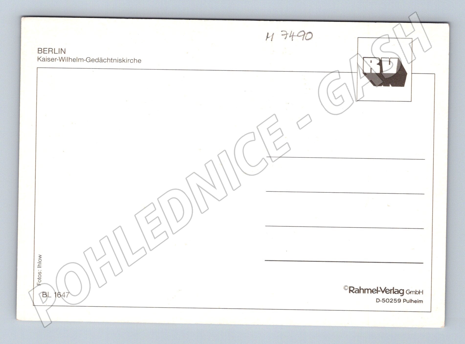 Original postcard depicting the famous Berlin memorial Kaiser-Wilhelm-Gedächtniskirche (Emperor Wilhelm Memorial Church) in Berlin. The postcard depicts both the original historical part of the church and the modern extension with characteristic architecture. The condition of the church is very well preserved, with no signs of damage. The reverse side is unwritten, suitable for collector's purposes or for sending. Publisher: Rahmel-Verlag GmbH, D-50259 Pulheim. A great addition to a collection of postcards with the theme of Germany and important European monuments.