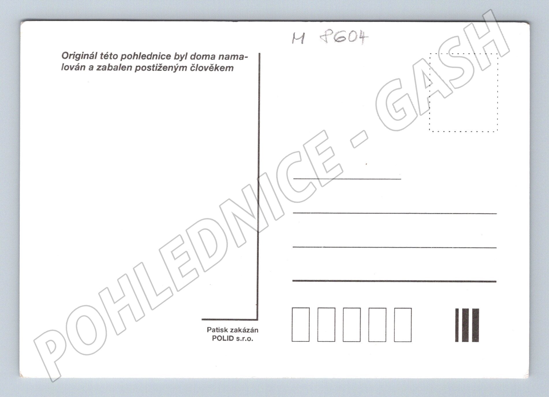 Originální vánoční pohlednice většího formátu s černobílou kresbou dvou svícnů a nápisem Veselé vánoce . Na zadní straně je uvedeno, že originál byl doma malován a zabalen postiženým člověkem, což z pohlednice dělá unikátní a charitativní sběratelský kousek. Vhodná pro sběratele moderních českých pohlednic nebo jako netradiční vánoční přání. Pohlednice nebyla použitá, ve výborném stavu.