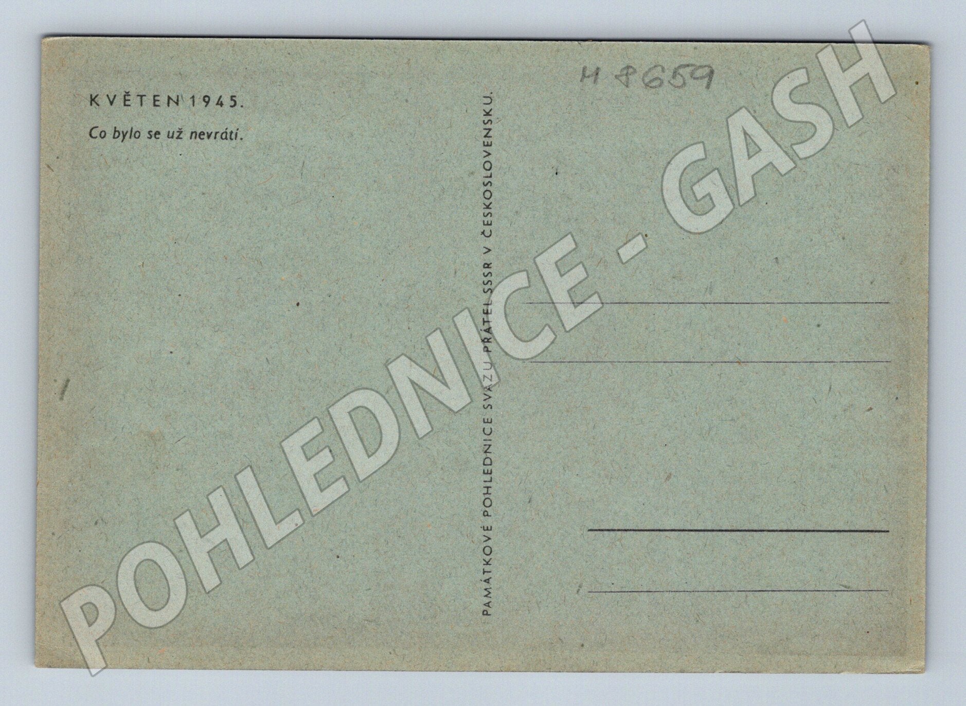 Commemorative postcard issued by the Union of Friends of the USSR in Czechoslovakia for the events of May 1945. On the front of the postcard is a period black and white photograph with the theme of liberation - soldiers, civilians and a folk celebration on the street, in the foreground an elderly man with an accordion. On the back we find the text: MAY 1945. What was will never come back. This is an original postcard from the period shortly after World War II with historical and collector's value. See photo for condition. Suitable for collectors of historical postcards, those interested in the period of World War II and Russian-Czechoslovak relations.