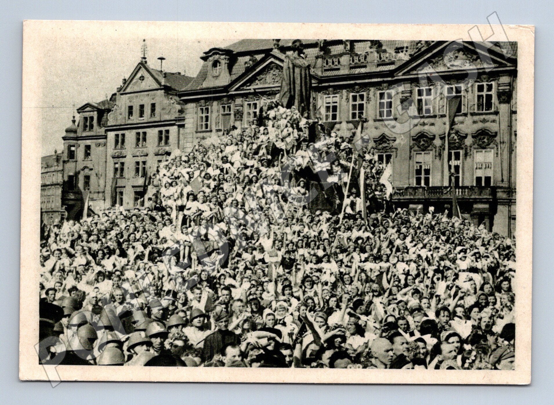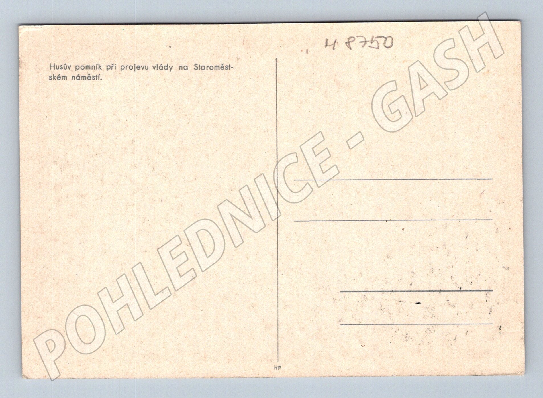 Original black and white postcard depicting the Hus monument during a government speech on Old Town Square in Prague. The postcard depicts a large crowd of people gathered around the monument in the historic city center. An interesting documentary shot from a significant event of the first half of the 20th century, ideal for a collection of postcards with Czech themes, historical events or Prague. Condition is consistent with age, without description, only slightly worn.