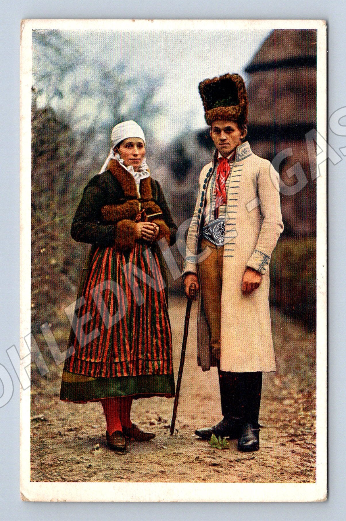 Pohlednice - Muž a žena z Litomyšlska v krojích, Národní muzeum Praha