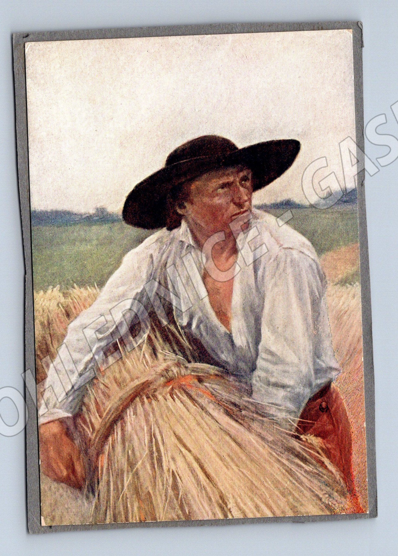 Nabízím originální pohlednici s reprodukcí obrazu od Jaroslava Spillar, motiv: Obrazy z Chodska. Na pohlednici je vyobrazen muž v tradičním kroji při polních pracích, výrazně stylizovaný v realistickém provedení. Pohlednice je v dobrém stavu, bez známek poštovního použití, pouze mírné opotřebení rohů odpovídající stáří. Zajímavý sběratelský kus pro milovníky českého malířství a regionální historie. Viz foto pro detailní stav.