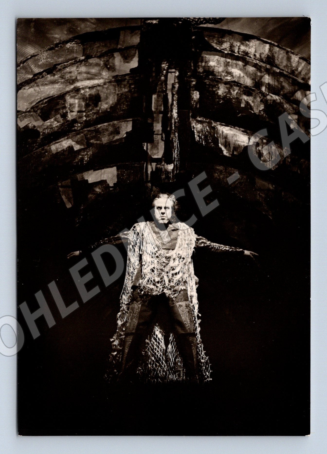 Originální černobílá pohlednice z Bayreuthských hudebních slavností roku 1959, zobrazující George Londona v roli Holanďana z Wagnerovy opery. Na obrázku je herec v kostýmu na scéně, v dramatickém osvětlení. Zadní strana opatřena potiskem s údaji o události a fotografovi (Ilse Buhs, č. 902), s copyrightem Festspielleitung Bayreuth. Pohlednice je ve velmi dobrém stavu, bez poškození, čistá a sběratelsky zajímavá. Výjimečný kousek pro milovníky opery, divadla a slavnostních představení v Bayreuthu.