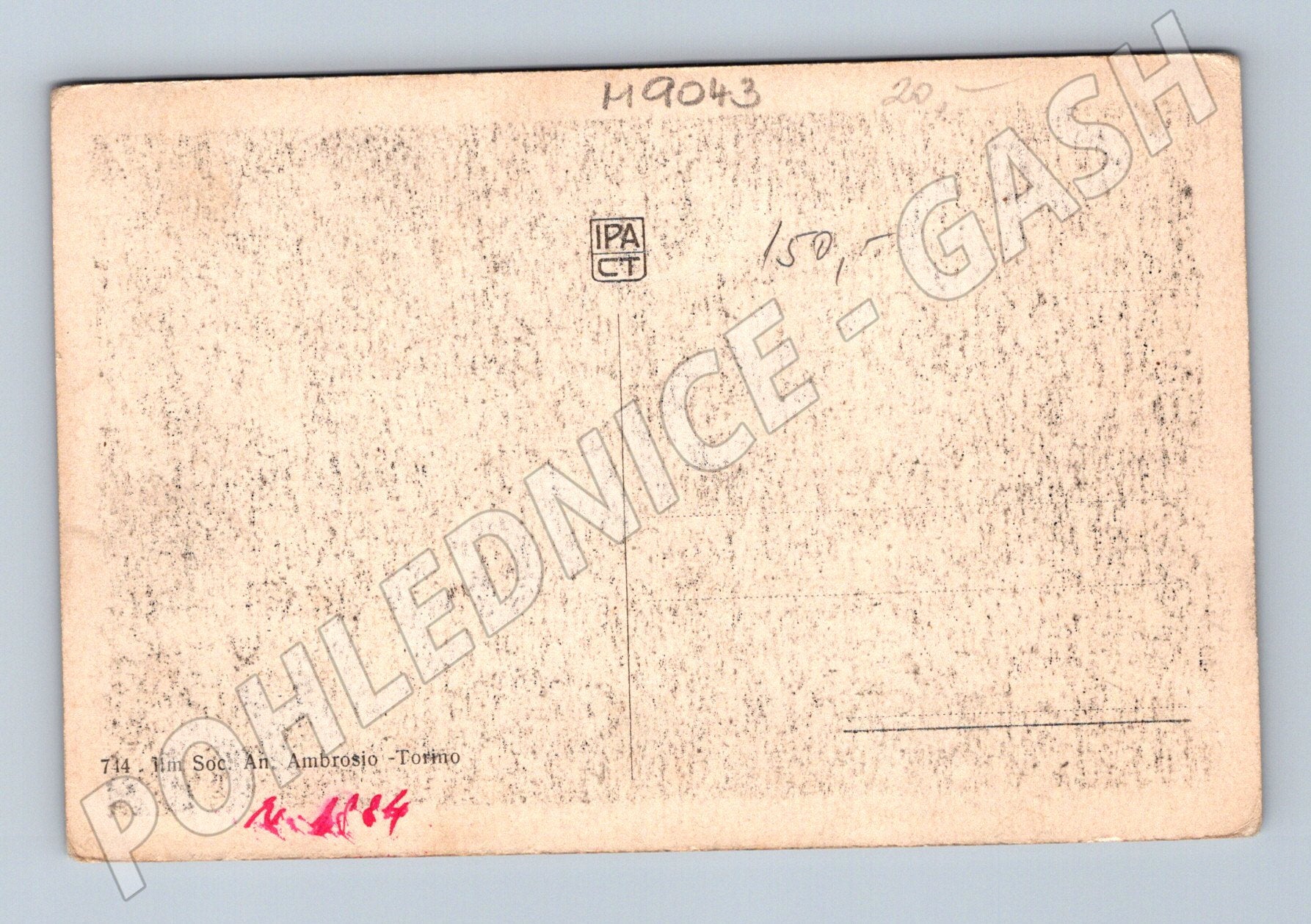 Starší pohlednice z Itálie s názvem „ROMANTICISMO – Come mangeresti volentieri una costoletta di porco!“. Pohlednice zachycuje scénu ze společnosti, v popředí stojí několik mužů v dobových uniformách a šatech, okolo nich skupina žen a dalších osob. Zajímavostí je text v italštině, který scéně dodává komický podtext. Na zadní straně najdete standardní prostor pro adresu a text, pohlednice je označena číslem 714 a vydavatelstvím Min Soc. An. Ambrosio – Torino. Pohlednice nese mírné známky stáří a opotřebení, vhodné pro sběratele historických pohlednic nebo milovníky italské historie a kultury.