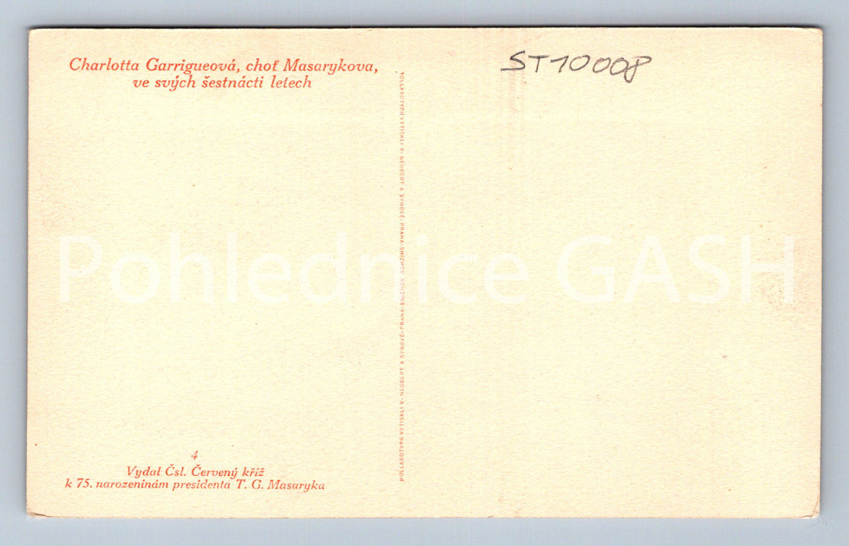 Postcard CHARLOTTE GARRIGUE, WIFE OF MASARYK (ST10008)