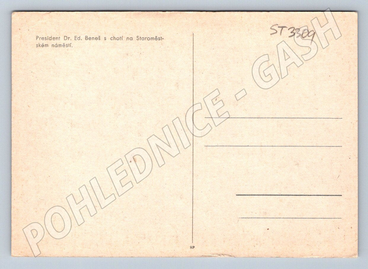 Postcard President Edvard Beneš and his wife in the square (ST3309)