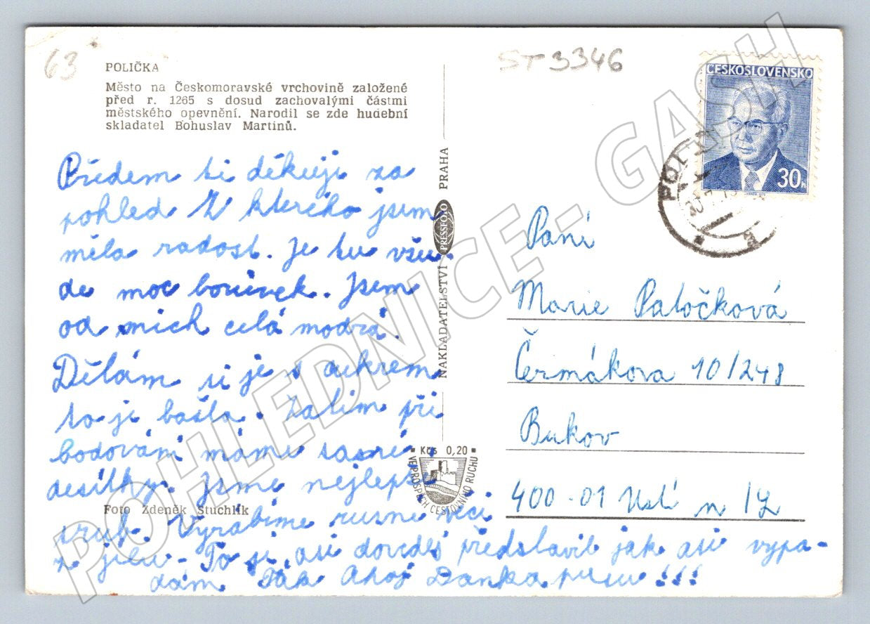 I am offering a vintage postcard from the town of Polička, depicting several black and white images of the town's skyline, local architecture and interior. The postcard dates from the period before 1950, is in good condition with a visible stamp and a written message on the back. An ideal collector's item for lovers of Czech postcards, history and regional literature. Distinctive historical elements and the capture of the atmosphere of a small Czech town add to this postcard's exceptional value.