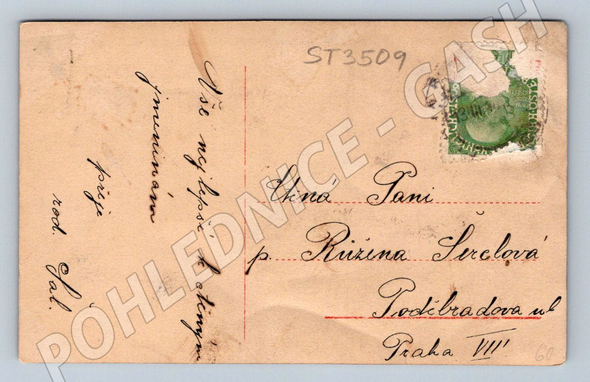 Original historical postcard from the period before 1950. The postcard is hand-colored, depicts an elegant young woman with a letter and flowers. On the back there is a period postage stamp and a handwritten message addressed to Prague by Mrs. Růžena Šrclová. The postcard is in collector's condition, with signs of age and minor wear on the edges, which increase its authenticity. Suitable for collectors of historical postcards or as an interesting gift from the first half of the 20th century.
