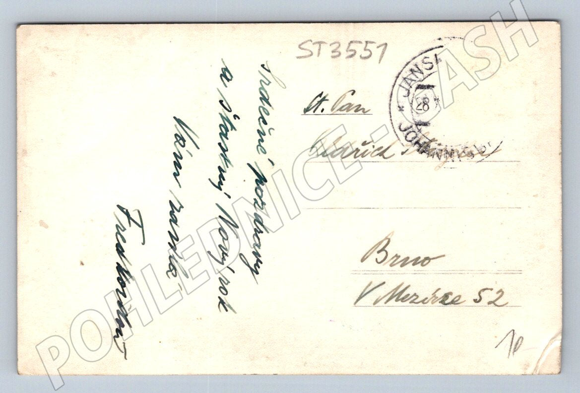 Original old postcard with an aerial view of Černá hora (Schwarzenberg) in the Krkonoše Mountains, Janské Lázně area. The picture clearly shows mountain huts and a snowy landscape. The postcard is black and white, with German and Czech descriptions in the upper part. On the back there is a handwritten message and address and a stamp with a postmark from JANSKÉ LÁZNÍ. Very good collector's condition, only minor signs of use on the edges. A unique period document of the Czech border region, suitable for both a thematic collection of mountains and the Krkonoše Mountains or Janské Lázně.