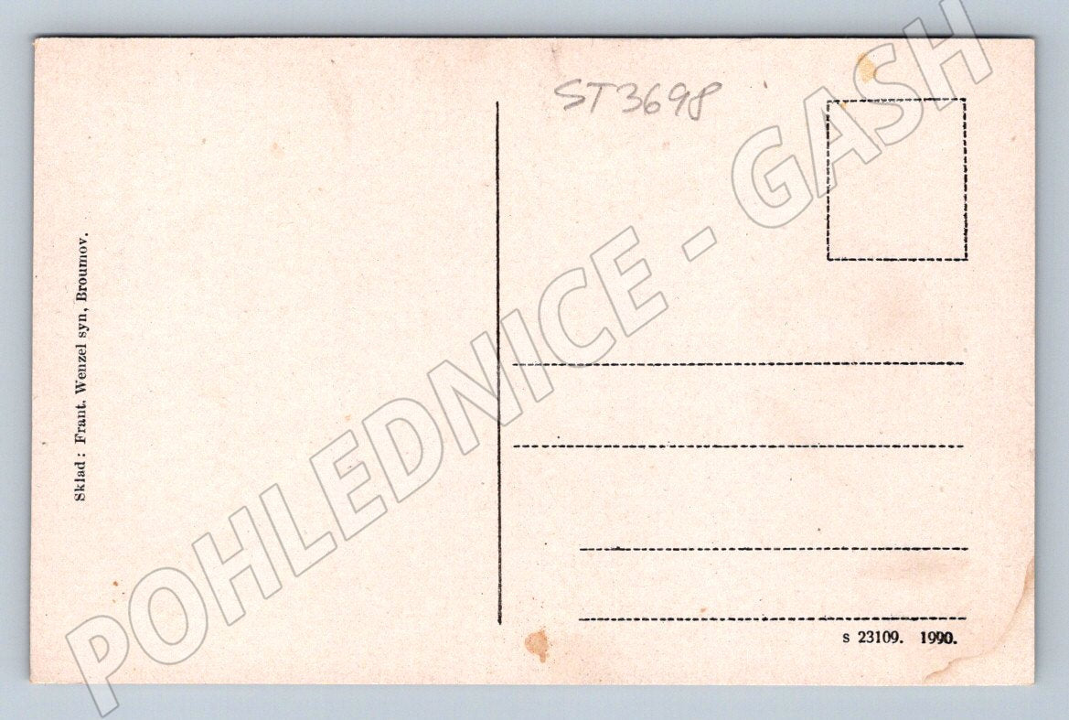 Original historical postcard from the turn of the 19th and 20th centuries (1900) depicting the famous sandstone formation Starosta s paní in Adršpach Rocks. The colorful postcard captures one of the most beautiful Czech natural monuments, typical of the Adršpach area, which has been popular with tourists for more than a hundred years. On the back there is the usual division for the address and message, the publisher is listed: Škdař Frant. Wenzel syn, Broumov. The postcard bears the ravages of time - slight yellowing and a bend in the corner, otherwise in good condition and a valuable collector's item.