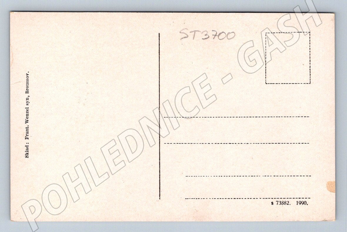 Original old postcard with the motif of the Adršpach Rocks and the formation called Jeptiška. The postcard dates from the first half of the 20th century. On the front side there is a color photograph of the famous rock formation surrounded by forests. The back side is unwritten, with a classic pre-printed address line. Publisher: Frant. Wenzel syn, Broumov. The postcard is in very nice collector's condition, suitable for a collection or as a decoration with a regional theme.