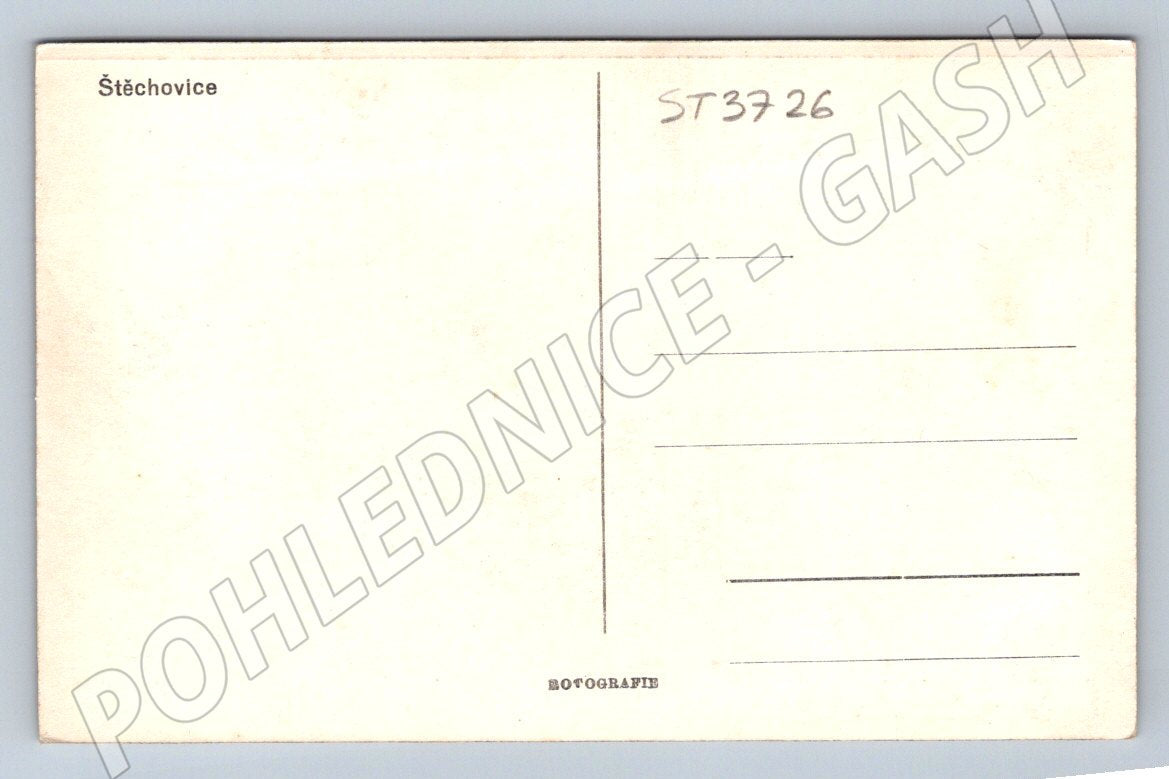 Original old postcard with an aerial view of the town of Štěchovice and the surrounding countryside. The postcard is in black and white, depicting the picturesque town along with the river, bridge and vast landscape around the Vltava. On the back there is a print of Štěchovice and a place for a stamp and address, without signs of damage or major wear. Ideal for collectors of historical postcards or lovers of regional history. The estimated age of the postcard is before 1950, the format is typical for this time.