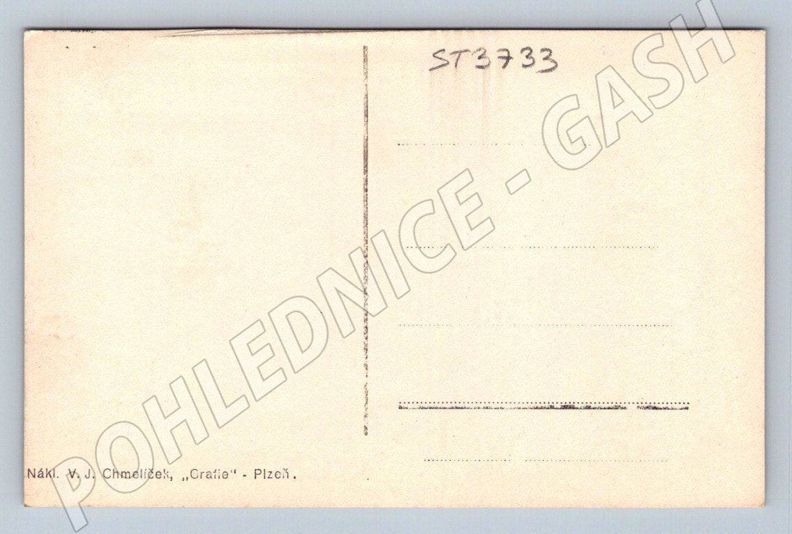 Original historical postcard depicting Freedom Square in Vodňany. The postcard is dominated by a view of the main church and town houses lining the square. The postcard is in black and white, without a stamp and without a description on the back. Publisher: VJ Chmelíček, Grafie Plzeň. Estimated age: first half of the 20th century. Very good condition, without major damage, suitable for a collection or as a decoration.