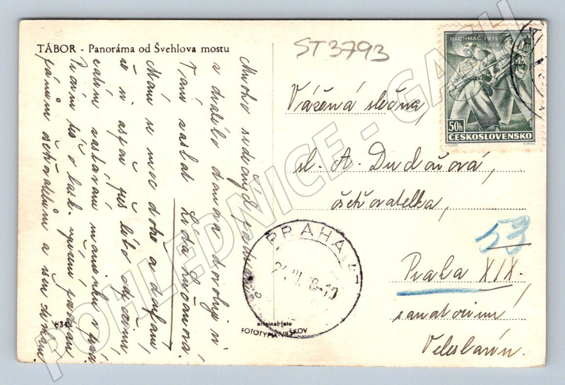 Original old postcard with a panoramic view of the city of Tábor from the Švehlova Bridge. The postcard depicts the bridge in the foreground and the typical buildings of the city, including the dominant features of the church. On the back there is a handwritten text, a stamp and a stamp with the Bachmač 1918 motif, which proves its postal use in the first half of the 20th century. Very nice collector's condition, only minor signs of age. Suitable for collectors of Czech postcards or those interested in the history of the city of Tábor.