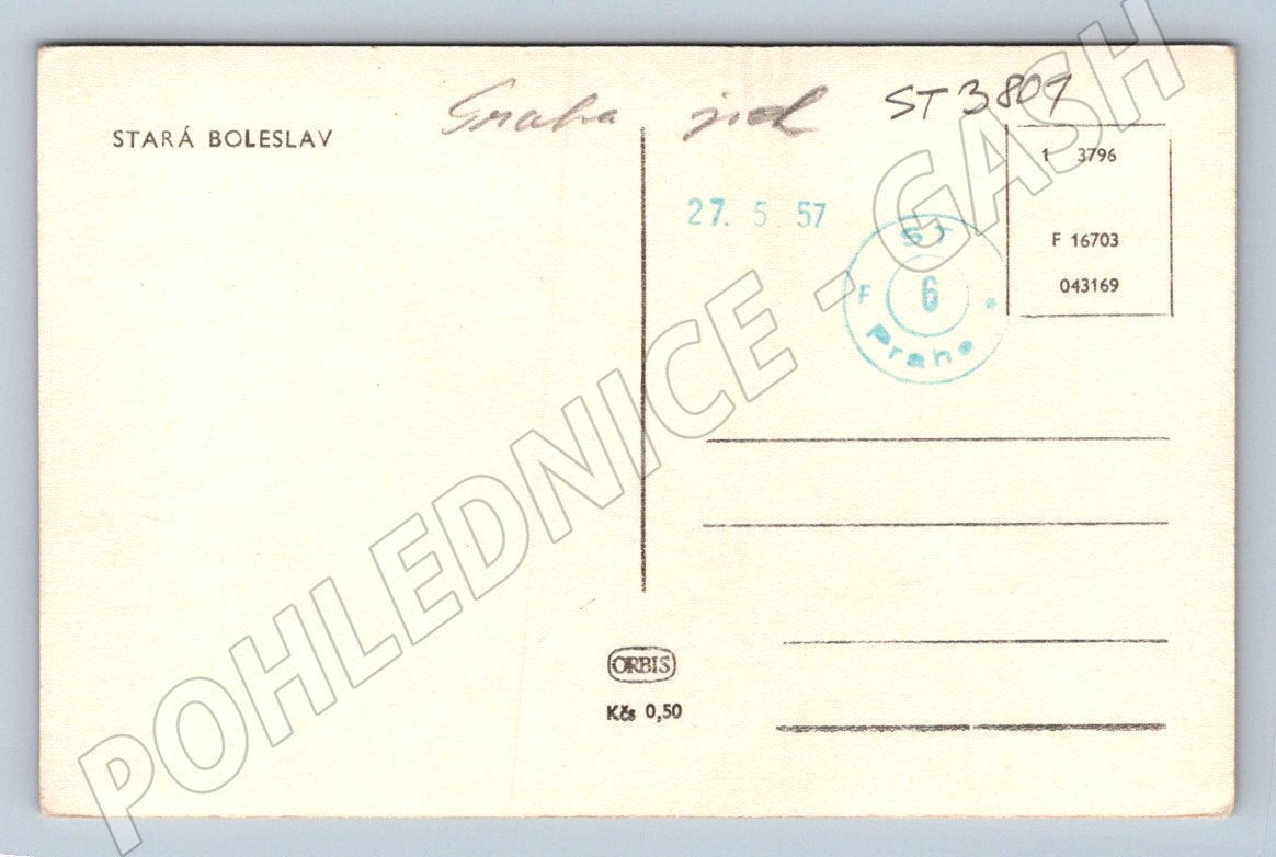 Stará Boleslav – Baroque church, postcard from the 1950s