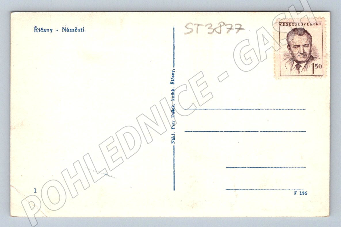 Original old postcard depicting the square in Říčany near Prague. The postcard depicts a church, a fountain with a statue in the middle of the square and historical buildings including a house with a drugstore and architectural elements. On the back is printed the name Říčany - Náměstí, there is a stamp and a stamp from the time of Czechoslovakia. The postcard is in good condition, with slight traces of age. Ideal for a collection of regional postcards or for lovers of Czech history and architecture. Small format until 1950.