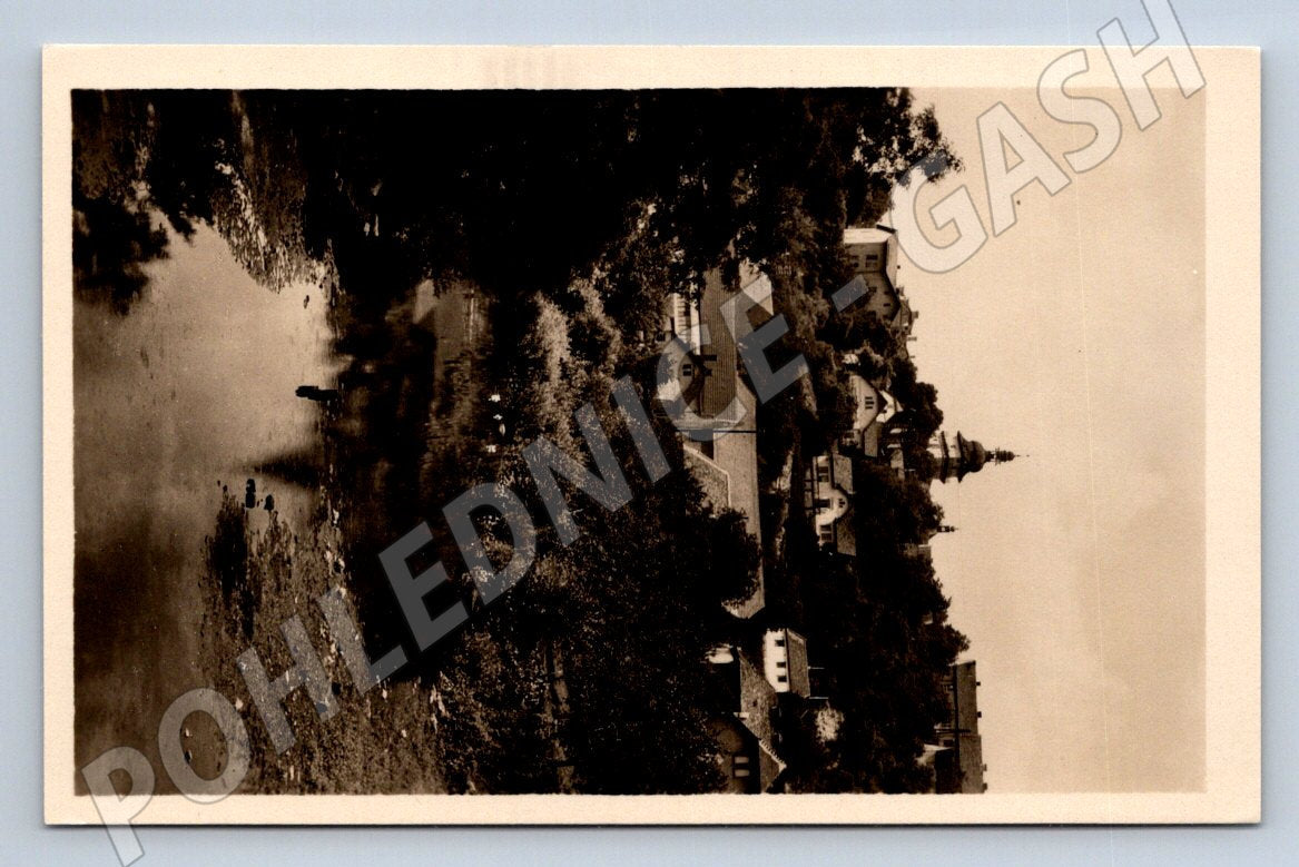 I am offering an original old postcard with a motif of the city of Benátky nad Jizerou with a view of the castle and its surroundings, called In the pools. The postcard is printed in black and white and captures a picturesque historical panorama of the city with the river in the foreground and the dominant feature of the local castle in the background. On the back there are small traces of pasting and use. The postcard was published by Orbis publishing house and dates from before 1950. A great collector's item, especially for lovers of Czech castles and chateaux.