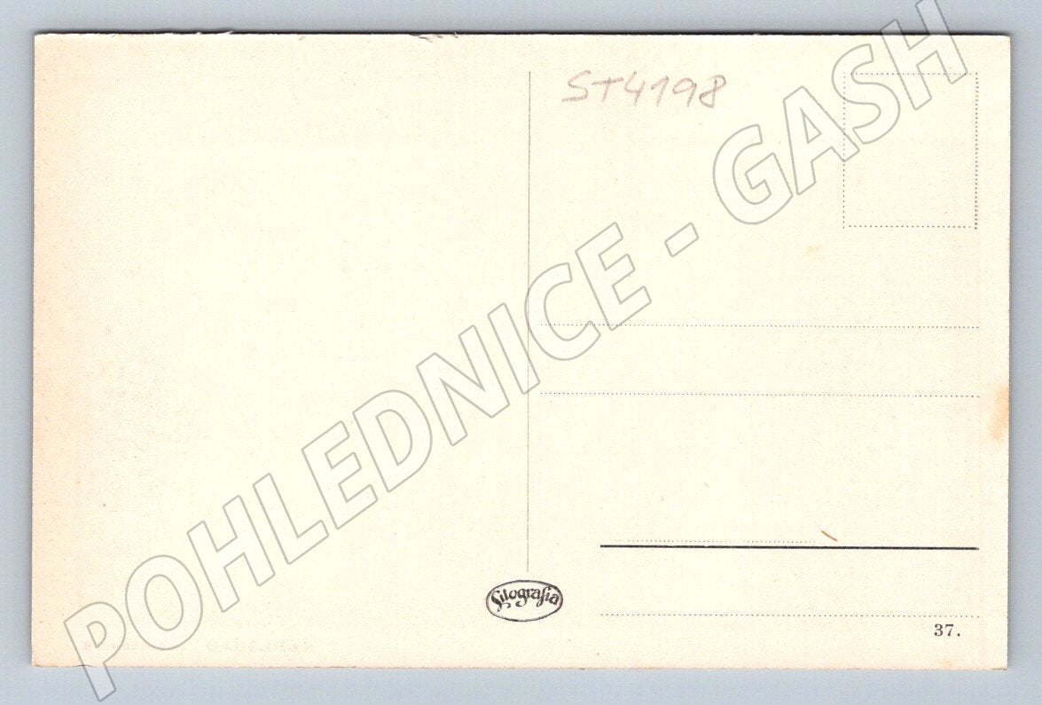 I am offering an old postcard of Karlovy Vary (Karlsbad), specifically a view of the Schlossberg. The postcard is in black and white, probably from the first half of the 20th century. On the front side there is a panoramic view of the historic city center with distinctive architecture and green hills in the background. The back side is unwritten and clean, with only a small number in pencil. The postcard is well preserved, without visible significant damage, suitable for collection or decoration.