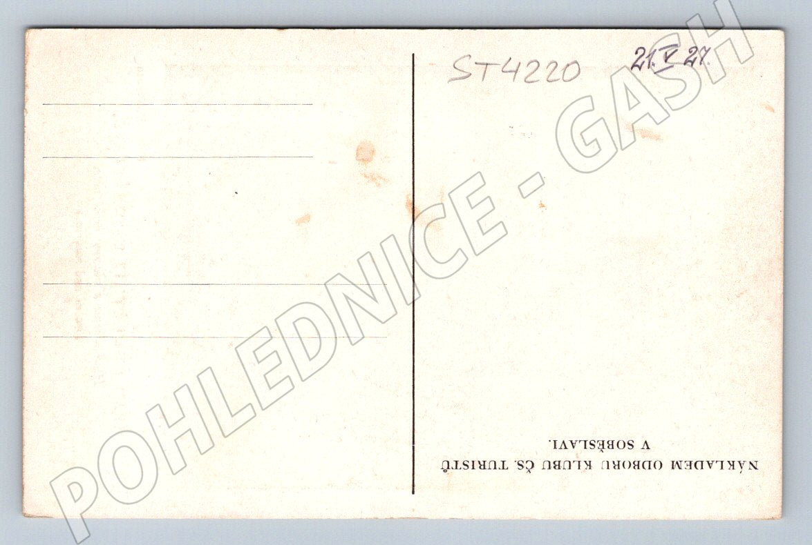 Original historical postcard depicting Choustník Castle near Soběslav. The front side depicts part of the ruins with the famine and the platform of the large tower (672 m above sea level), the author of the photograph is E. Frana. The postcard is provided with a description and information about the publisher - published by the department of the Czechoslovak Tourist Club in Soběslav. The back side is blank, only with a numerical designation and the date 21.V.27 (21. 5. 1927). An ideal addition to the collection of lovers of Czech castles and historical postcards.