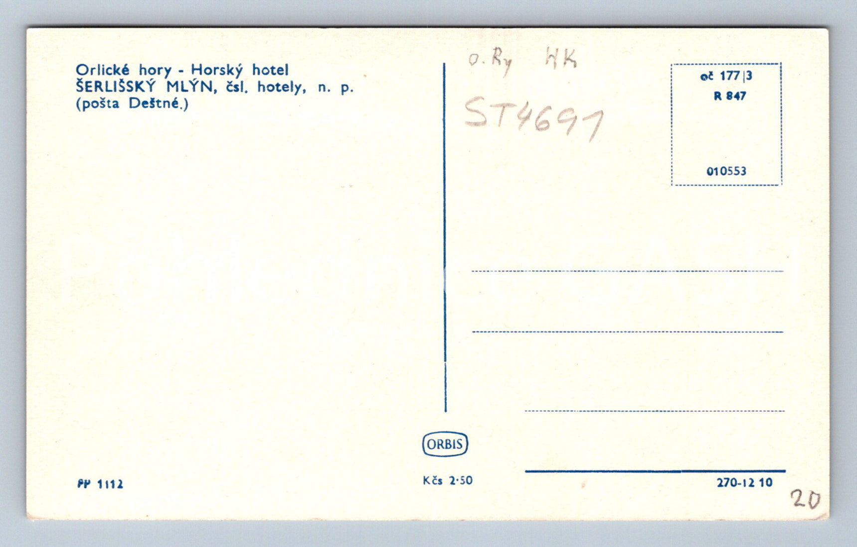 Postcard ORLICKÉ MOUNTAINS - MOUNTAIN HOTEL ŠERLIŠSKÝ MLÝN (ST4691)