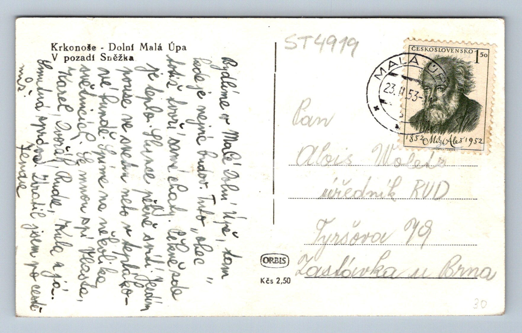 Postcard KRKONOSE - DOLNÍ MALA ÚPA IN THE BACKGROUND SNOW WHITE (ST4919)