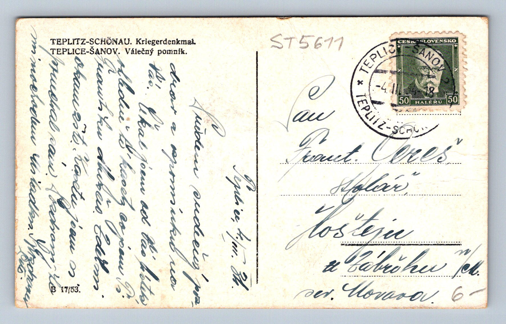 Postcard TEPLICE - ŠANOV - WAR MONUMENT (ST5611)