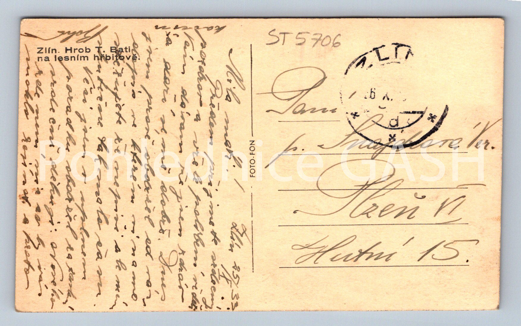 Postcard ZLÍN - GRAVE OF BAŤI REST, OUR GREAT TEACHER! (ST5706)