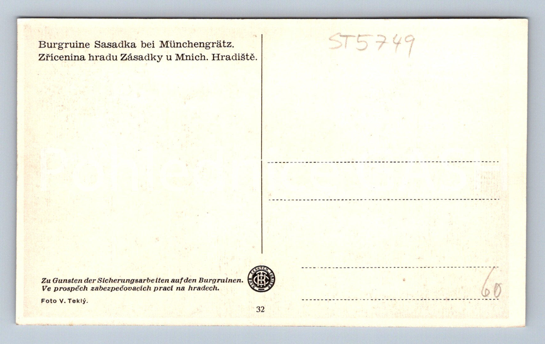 Postcard RUINS OF ZÁSADKA CASTLE NEAR MNICHOV HRADIŠTE (ST5749)