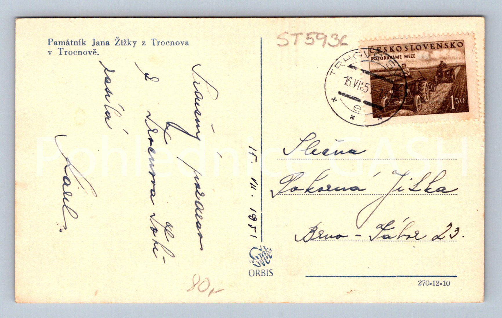Postcard MONUMENT TO JAN ŽIŽKA OF TROCNOV IN TROCNOV (ST5936)