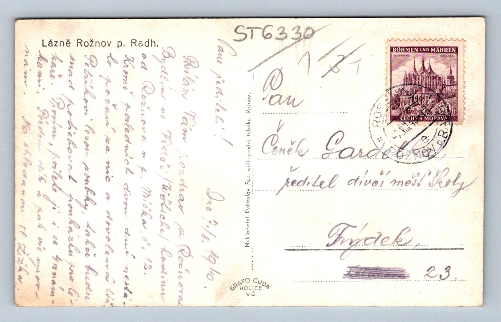 Postcard LÁZNĚ ROŽNOV POD RADHOŠTĚM (ST6330)