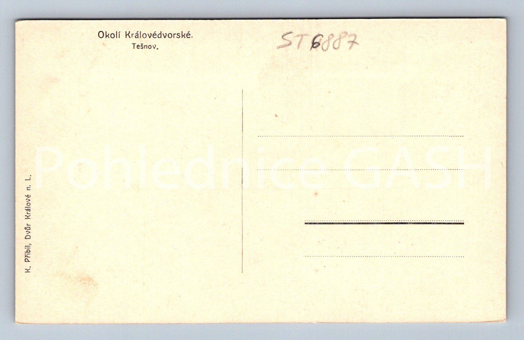 Postcard TĚŠNOV - SURROUNDINGS OF KRÁLOVÉDVOŘSKÁ (ST6887)