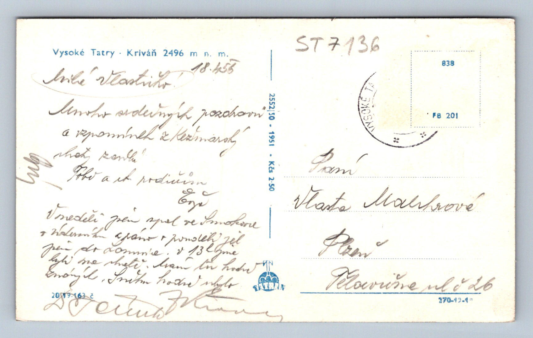Postcard HIGH TATRAS (ST7136)