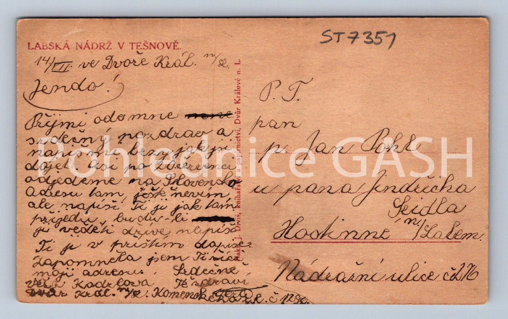 Postcard ELBE RESERVOIR IN TĚŠNOV (ST7351)