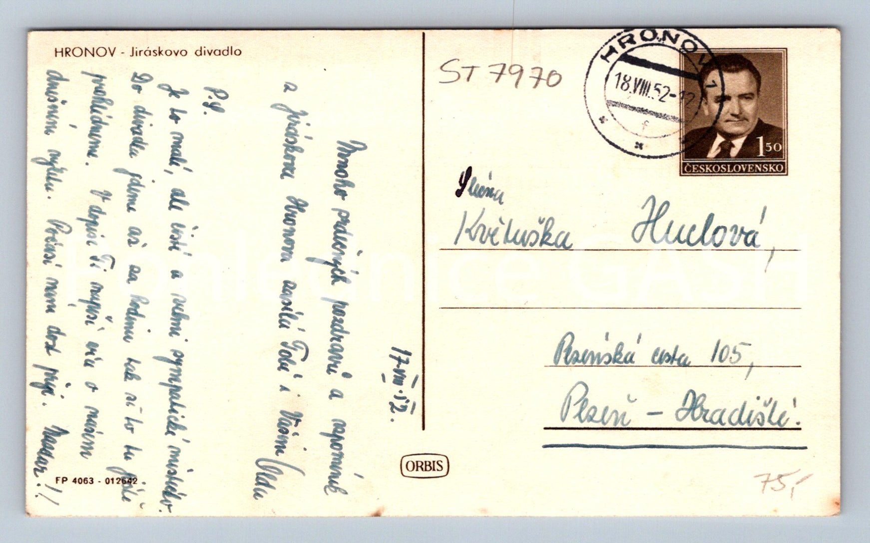 Postcard HRONOV (ST7970)