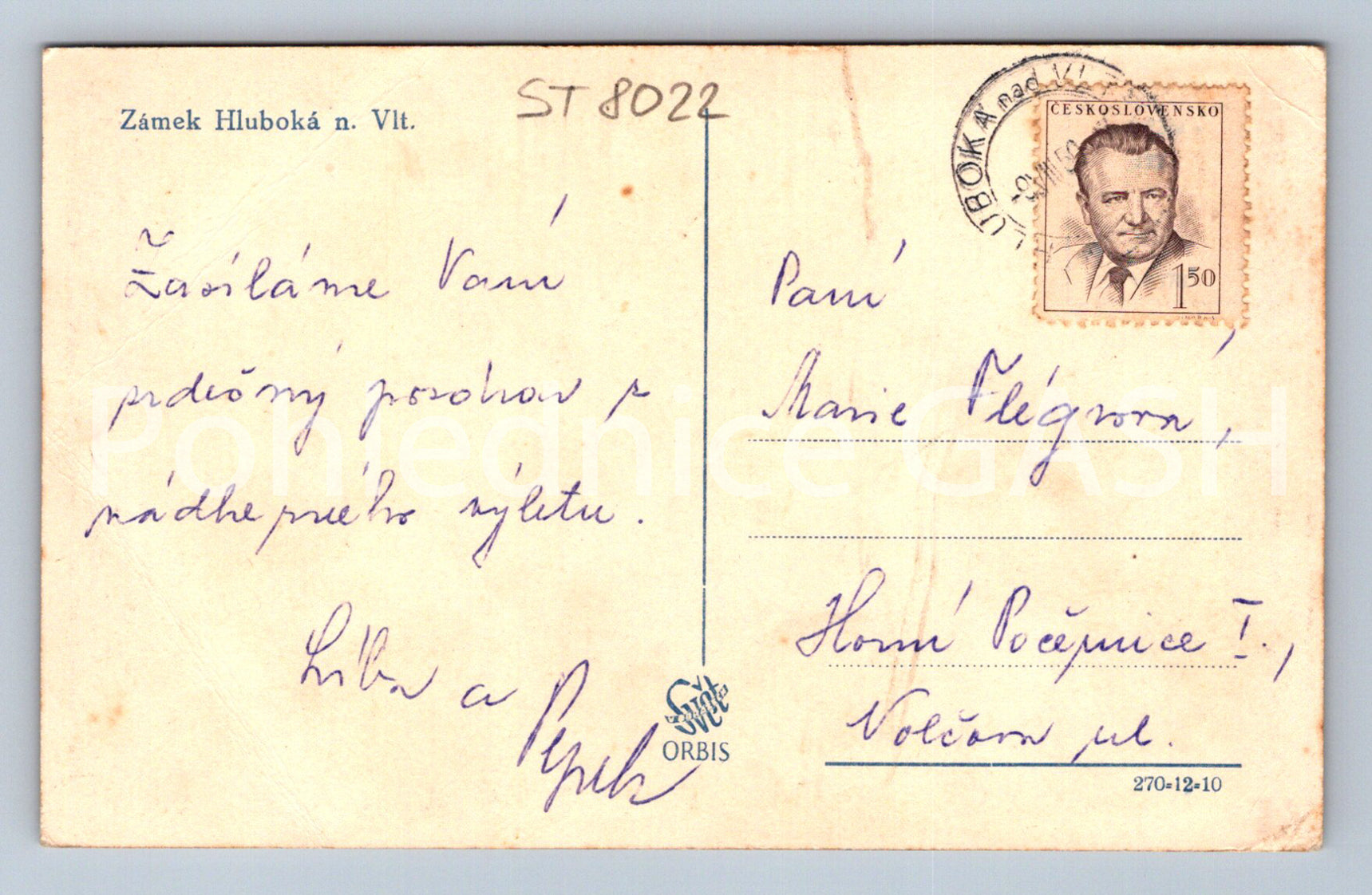 Postcard HLUBOKA NAD VLTAVOU CASTLE (ST8022)
