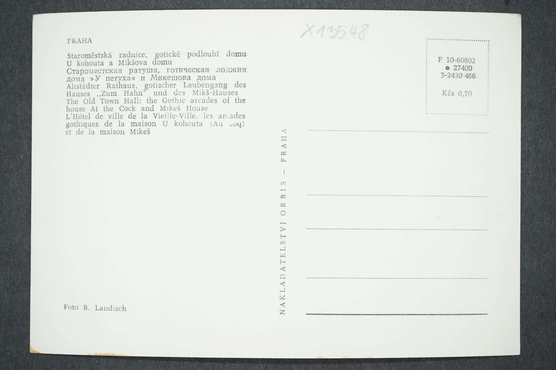 Postcard OLD PRAGUE. TOWN HALL GOTHIC ARCHES OF THE HOUSE U KOHOUTA AND MIKŠOVA HOUSE (x13548)