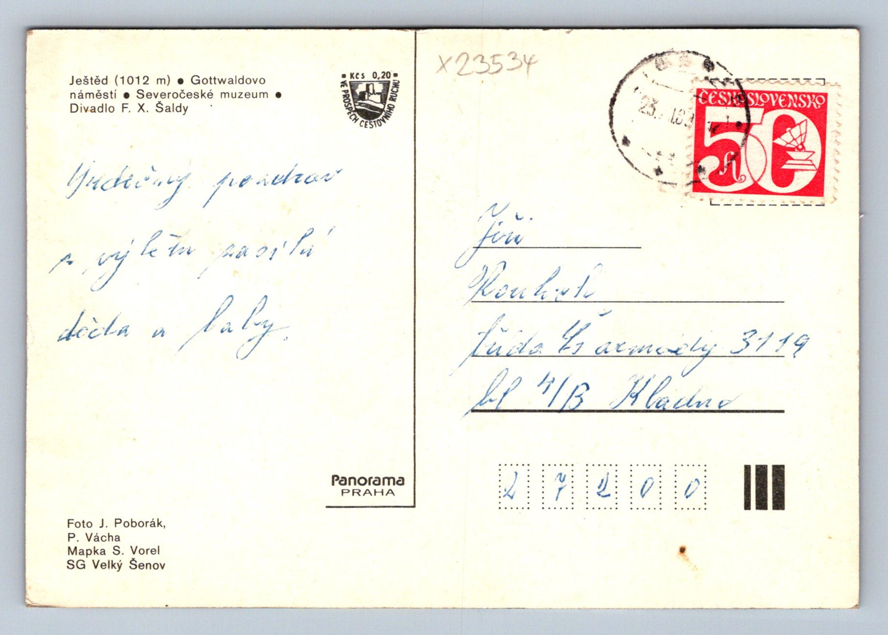 Postcard JEŠTĚD - GOTTWALD SQUARE - NORTH BOHEMIAN MUSEUM - FX ŠALDA THEATRE (X23534)