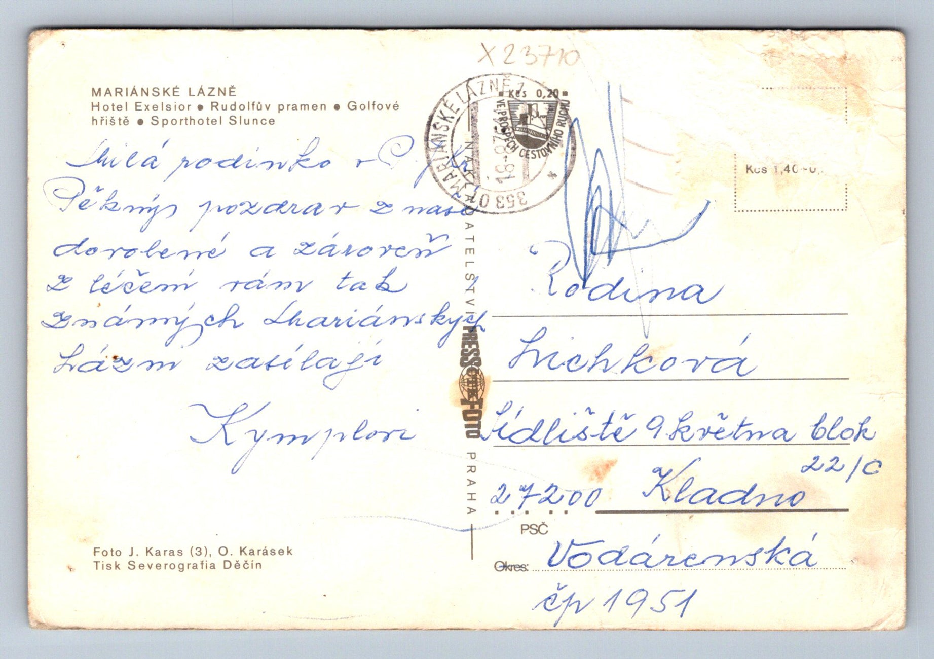 Postcard MARIANSKÉ LÁZNĚ (X23710)