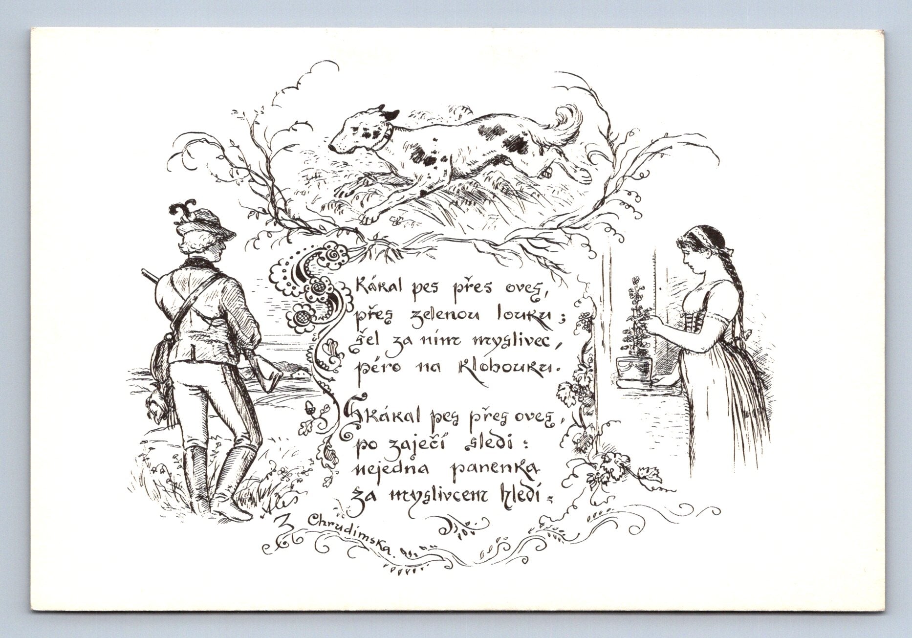 Pohlednice Skákal pes přes oves - Kreslil M. Aleš (JN1009)