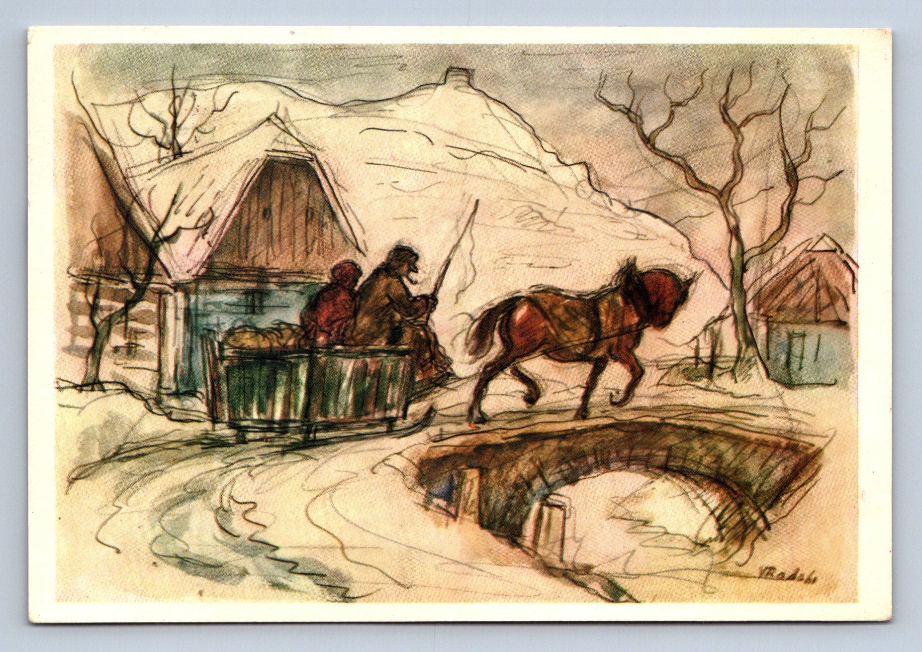 Pohlednice Vůz s koněm jede přes most (JN1021)