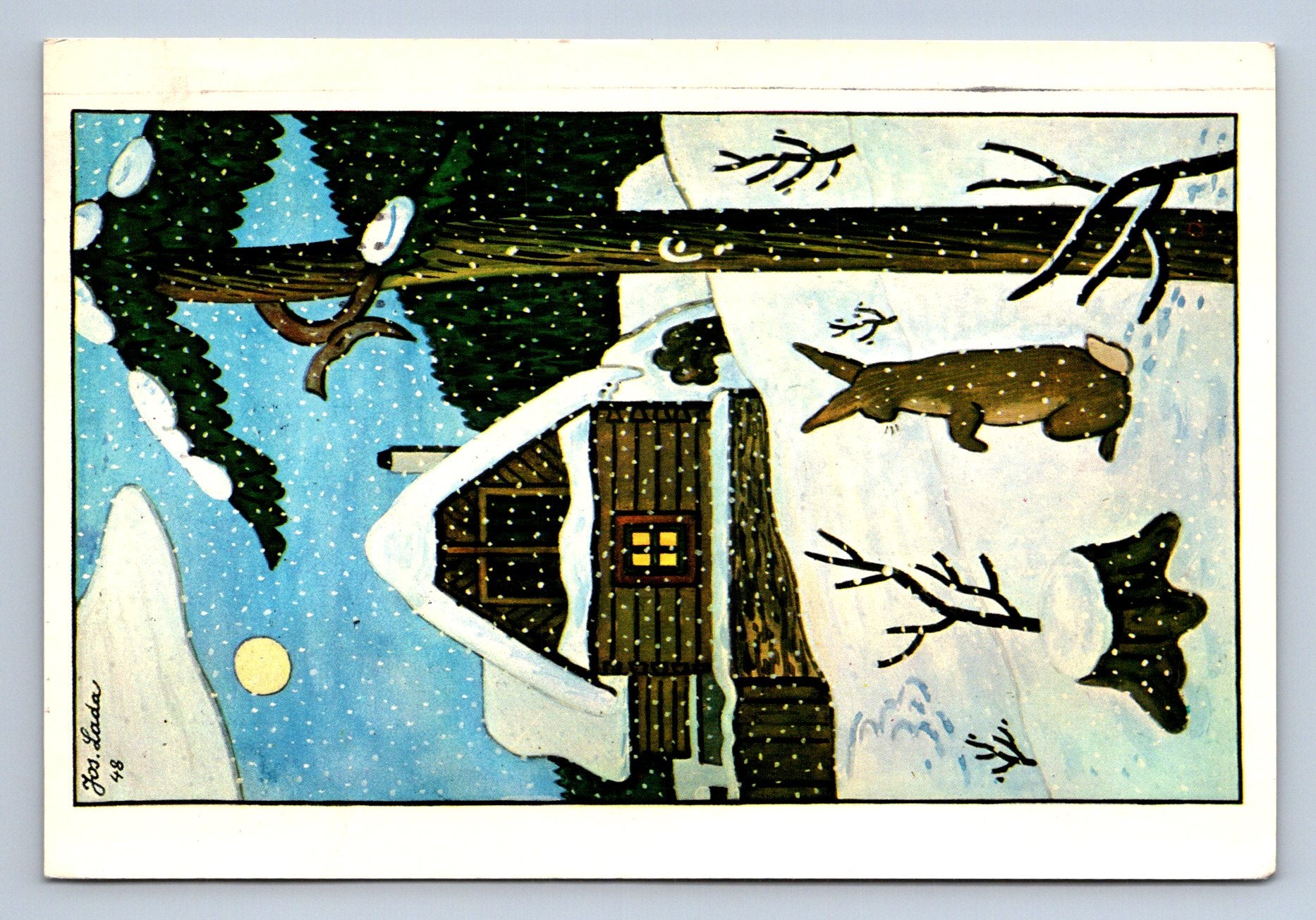 Pohlednice Lada - Zasněžená chalupa v popředí se zajícem (JN1024)