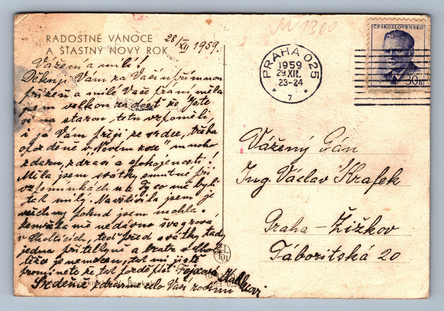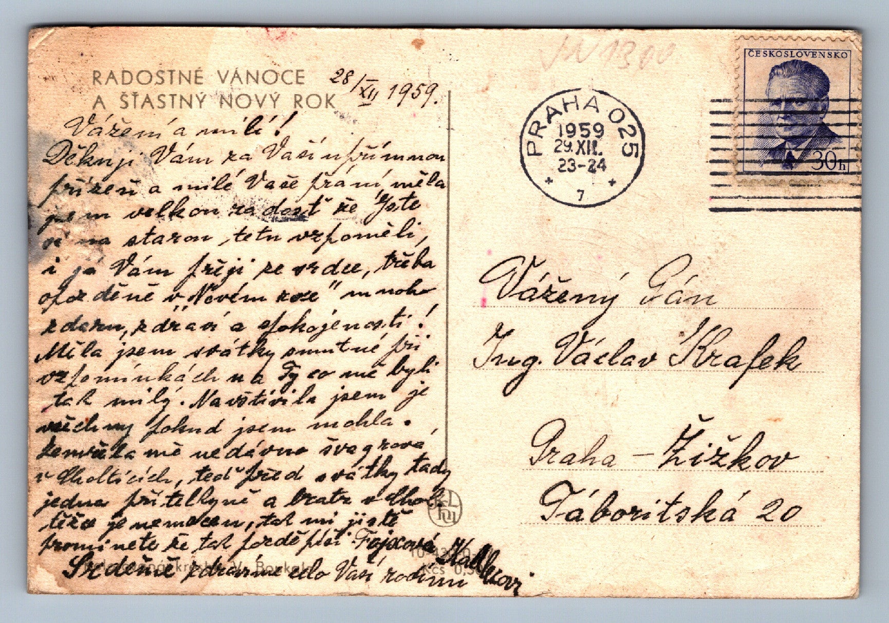Pohlednice Radostné Vánoce a Šťastný nový rok 1959 (JN1300)