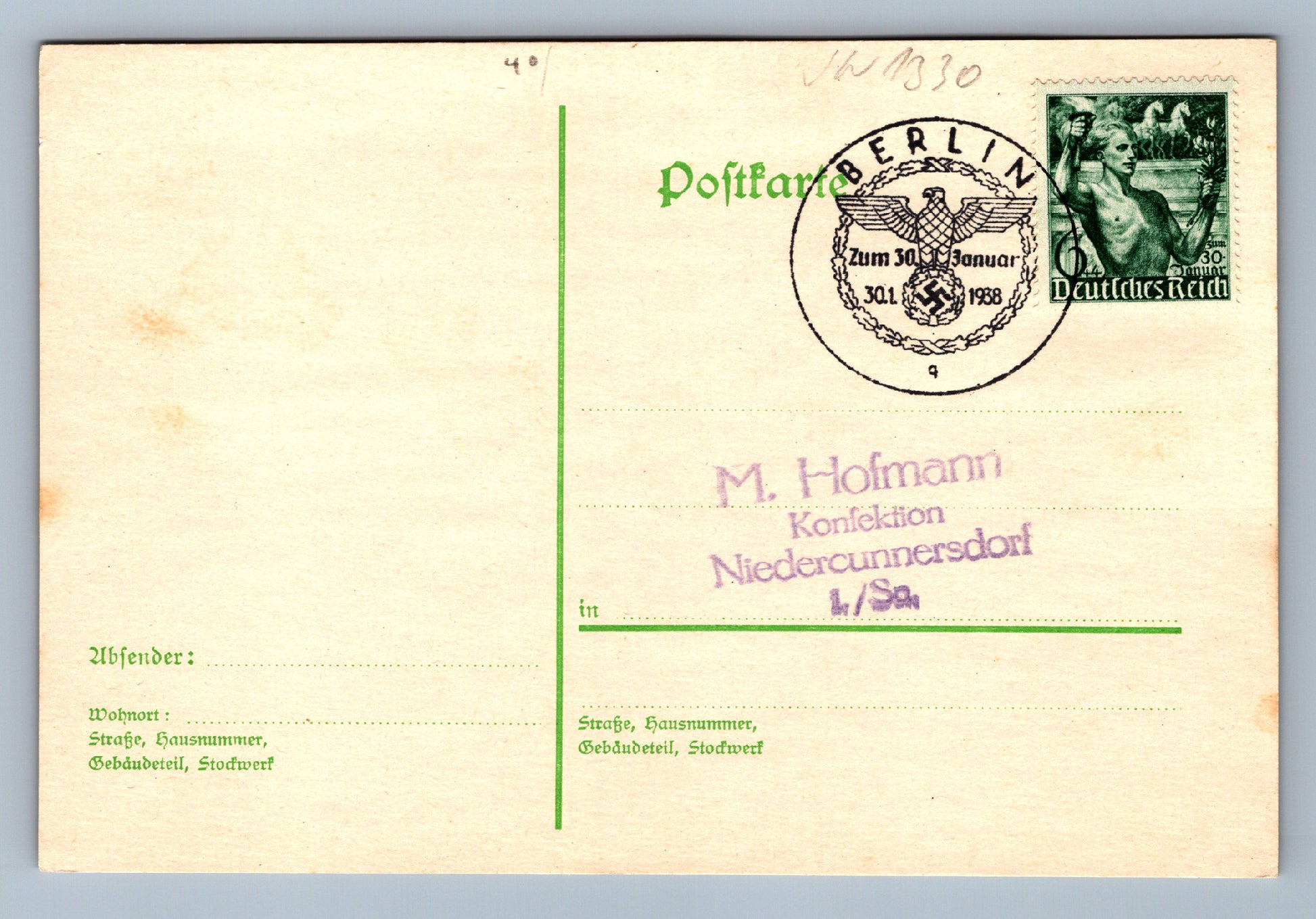Pohlednice Berlín M.Hofmann fialové razítko zelená známka TŘETÍ ŘÍŠE W