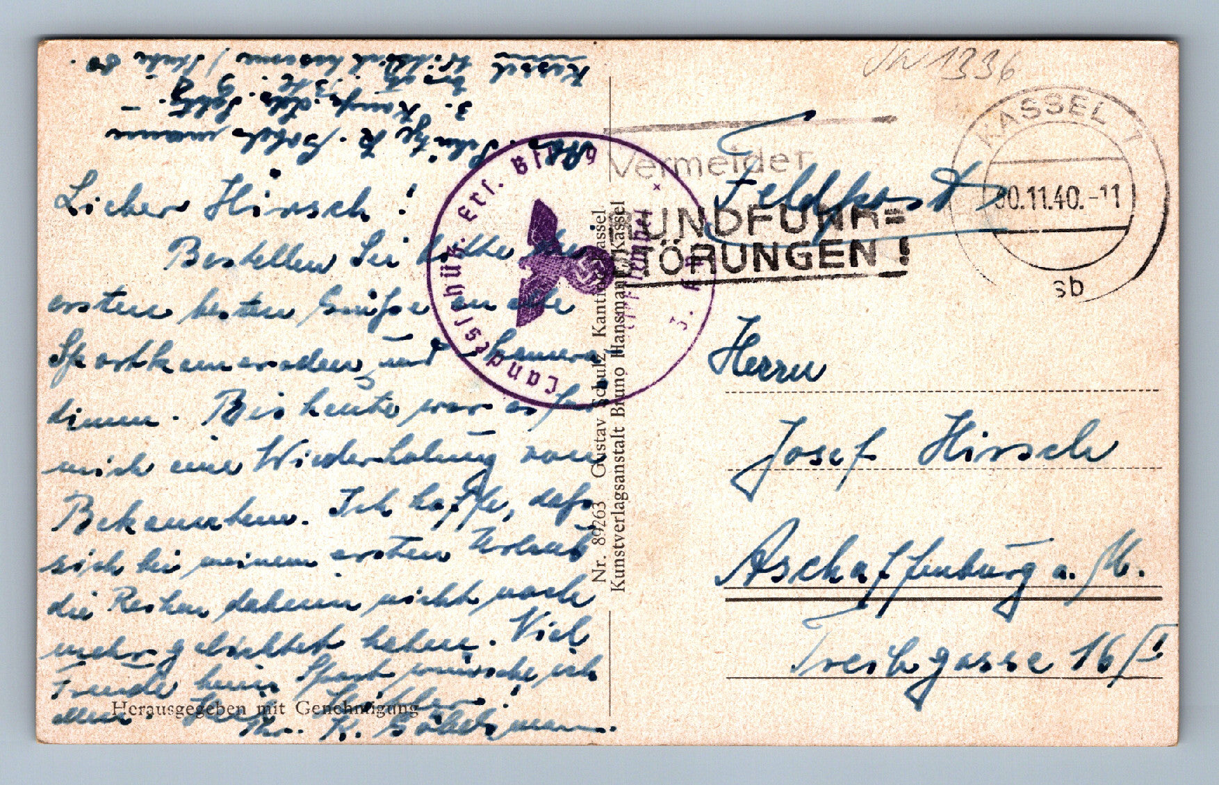 Pohlednice Kassel, Wittich-kasserne KASÁRNA VOJENSKÁ třetí říše VOJENKÁ POŠTA (JN1336)