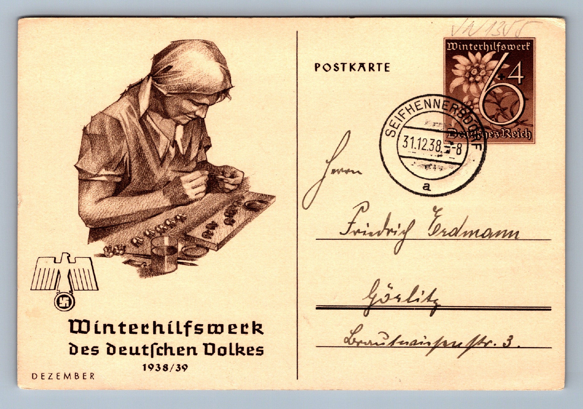 Pohlednice Malující žena razítko Seifhennensdorf TŘETÍ ŘÍŠE winterhilf