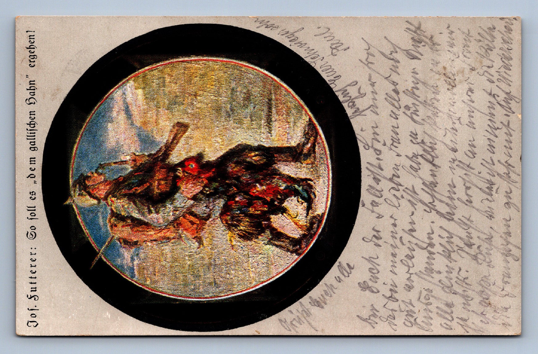 Pohlednice Voják s kohoutem v ruce FELDPOST (JN1385)