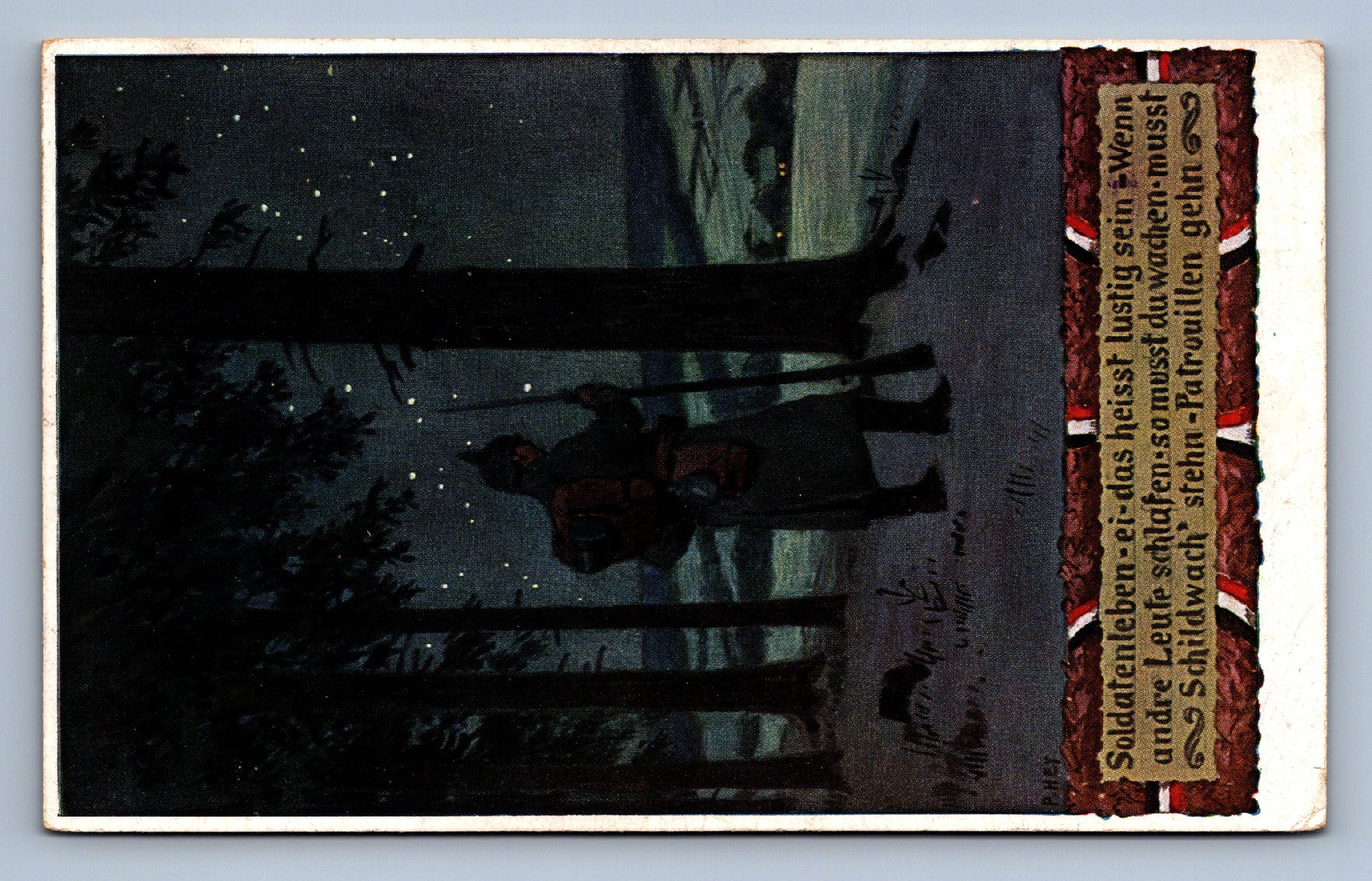 Pohlednice Kreslený vojak ve tmě razítko Gorlitz VOJENSKÝ (JN1393)