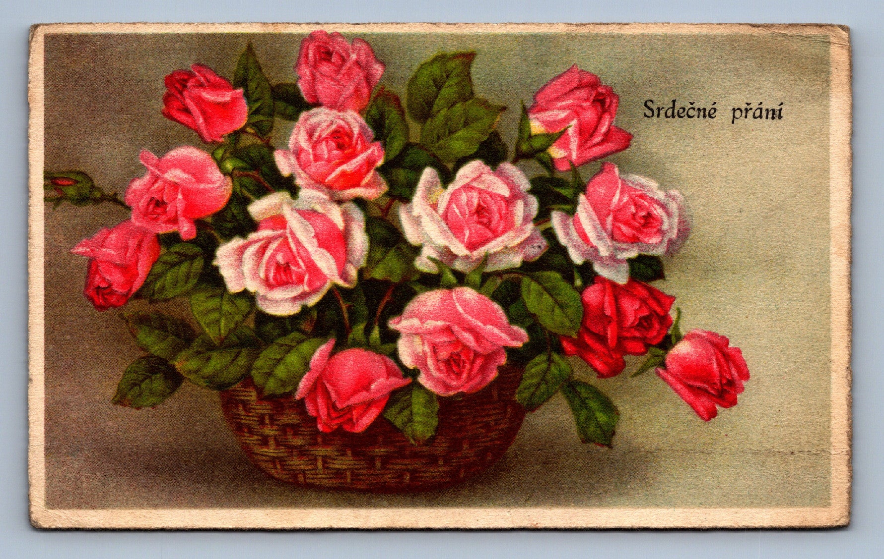 Pohlednice Srdečné přání koš s růžemi (JN1520)