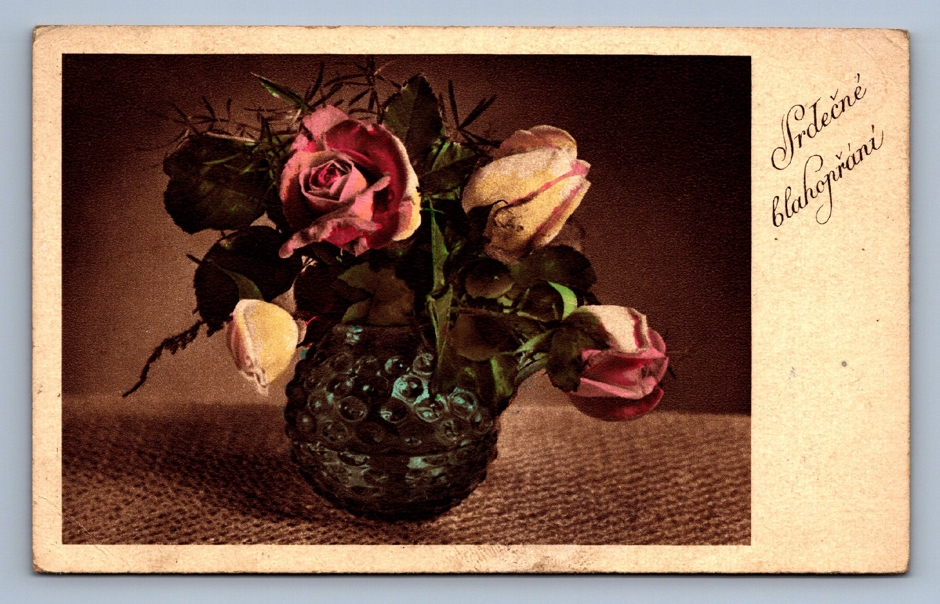 Pohlednice Srdečné přání růže ve váze (JN1535)
